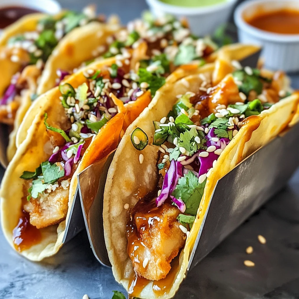 - Plated Meal: Arrange the tacos neatly on dinner plates, garnished with fresh cilantro and sesame seeds for an appealing presentation.